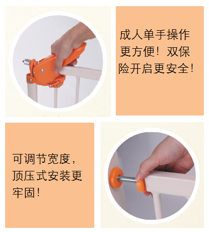 双保险开启系统,儿童不易模仿开启门栏;