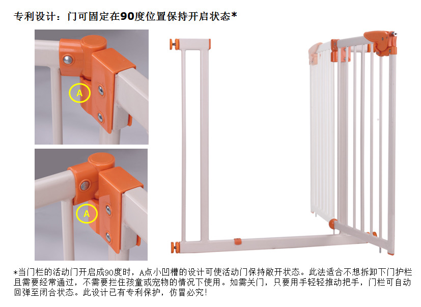 - 双保险开启系统,儿童不易模仿开启门栏;
