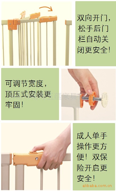 - 双保险开启系统,儿童不易模仿开启门栏;