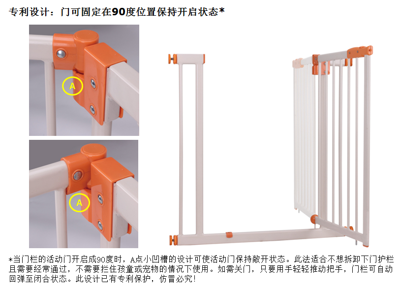 双保险开启系统,儿童不易模仿开启门栏;